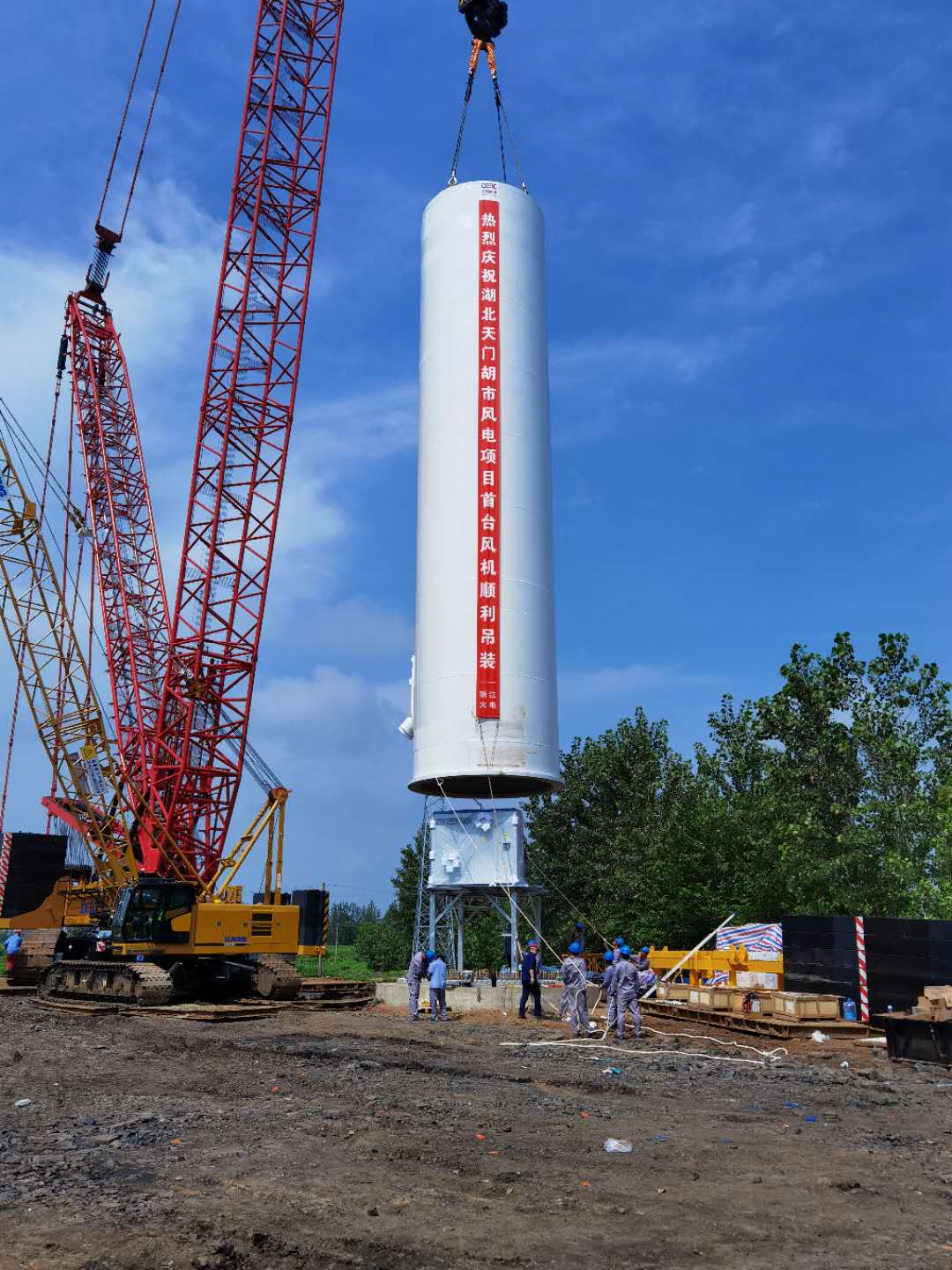熱烈慶祝湖北天門胡市風(fēng)電項目首臺風(fēng)機順利吊裝!